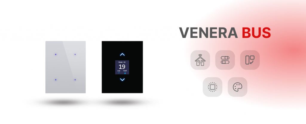 Venera Kablosuz Panel serisi ile akıllı ev kontrolünün kolay ve şık yoluyla tanışın. Kablosuz serimizin bir ürünü olan Venera kablosuz panel, aydınlatmaları, perdeleri ve kepenkleri kontrol etmenize yardımcı olmak için zarif bir şekilde tasarlanmıştır.1,2,3 ve 4’lü Buton kombinasyonları bulunan VENERA kablosuz panel, röle kanallarını kontrol edebilir ve sistemdeki diğer cihazlara komutlar göndermek için de kullanılabilir.